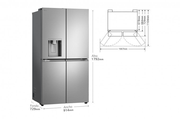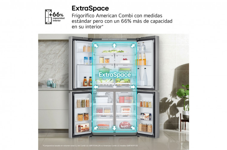 Frigorífico American Combi GMF961PY3E , Sin toma de agua Clasificación E, 646 L, Inox antihuellas