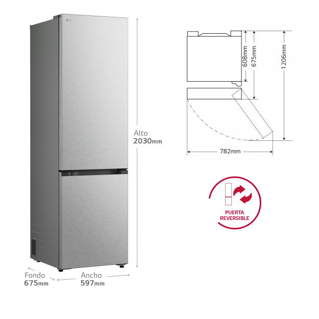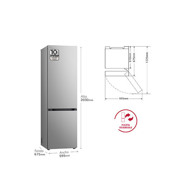GBBW322DPY.APYQEUR Frigorífico Combi | LG GBBW322DPY DoorCooling+, 2,03m, capacidad de 465l, Serie 300, Clasificación D, inox antihuellas" Ficha técnica de producto 1.299,00 € Ahorra 212,20 € 1.086,80 € Más información Comprar ahora Comprar ahora