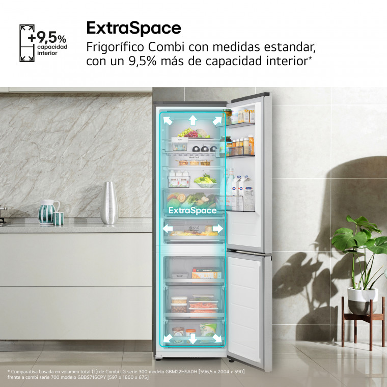 Frigorífico Combi DoorCooling+, 1,86m, capacidad de 333l, Serie 700, Clasificación C, Inox antihuellas