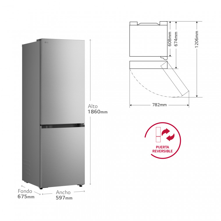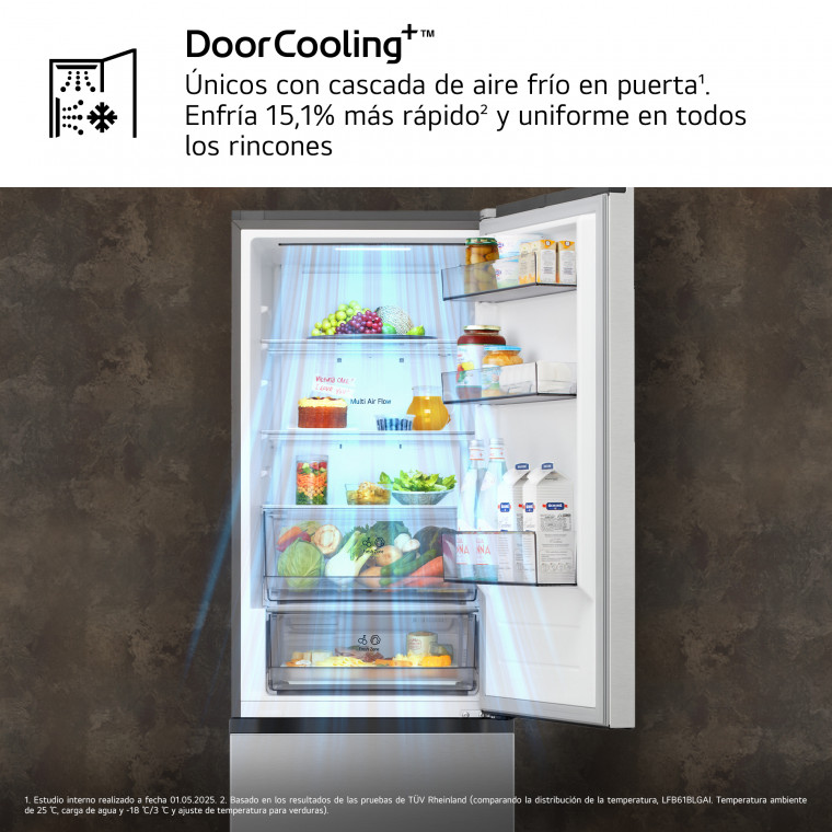 Frigorífico Combi DoorCooling+, 2,03m, capacidad de 375l, Serie 700, Clasificación C Acero texturizado antihuellas