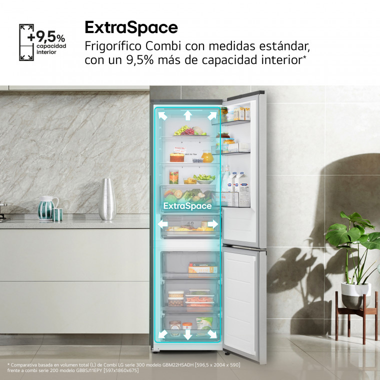 Frigorífico Combi GBBSJ11EPY DoorCooling+, 1.86m de 333l, Serie 200, Clasificación E, Inox antihuellas