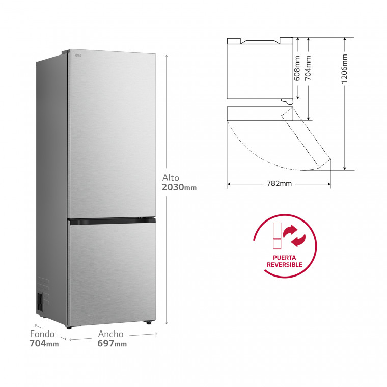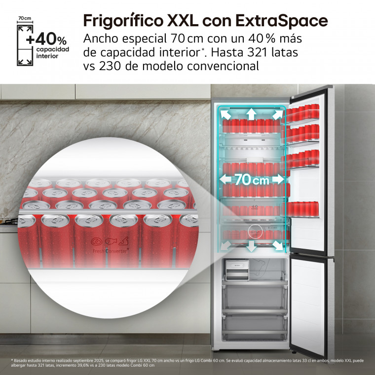 Frigorífico Combi GBBW726AMB DoorCooling+, 2,03m, capacidad de 465l, Serie 700, Clasificación A, acero texturizado antihuellas