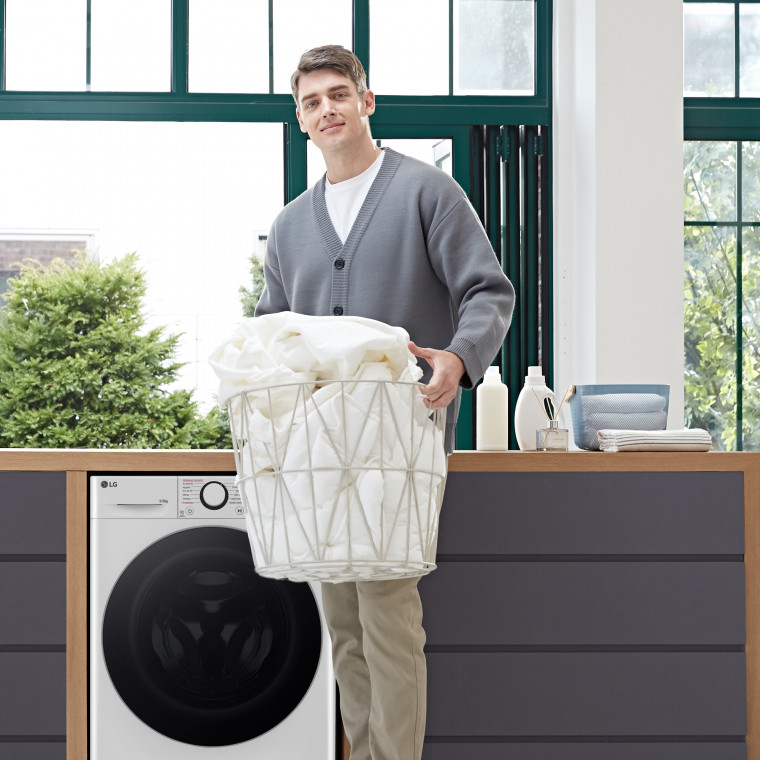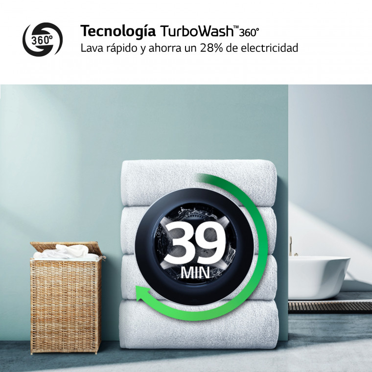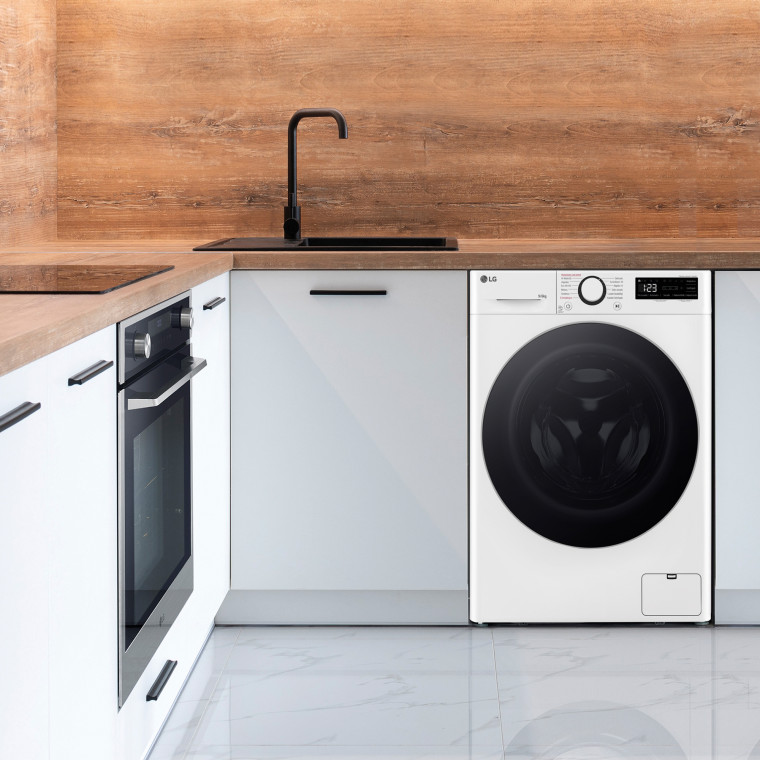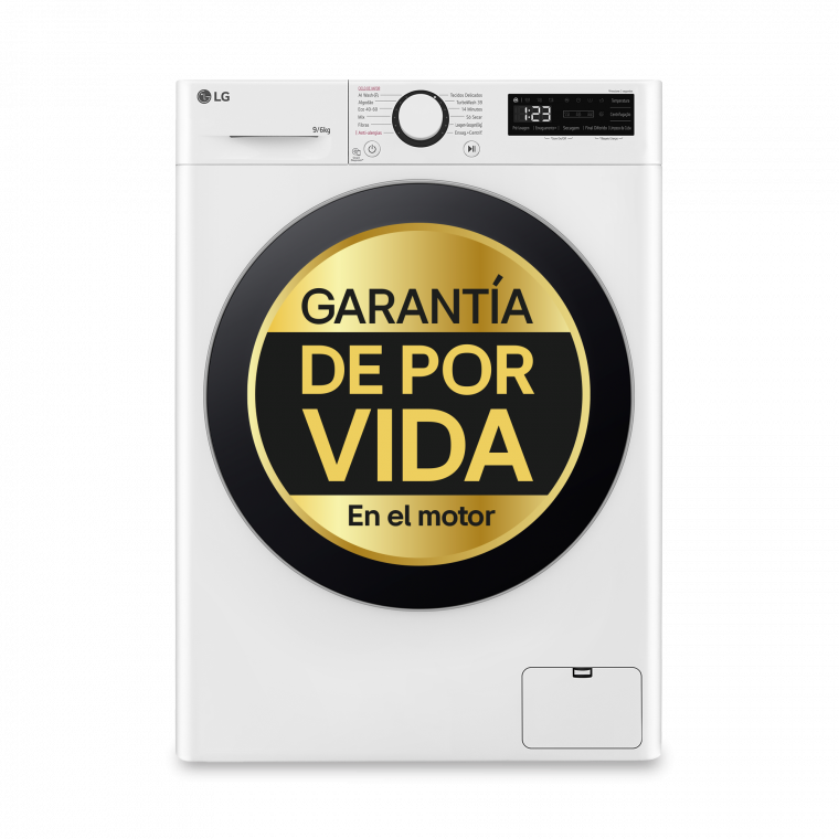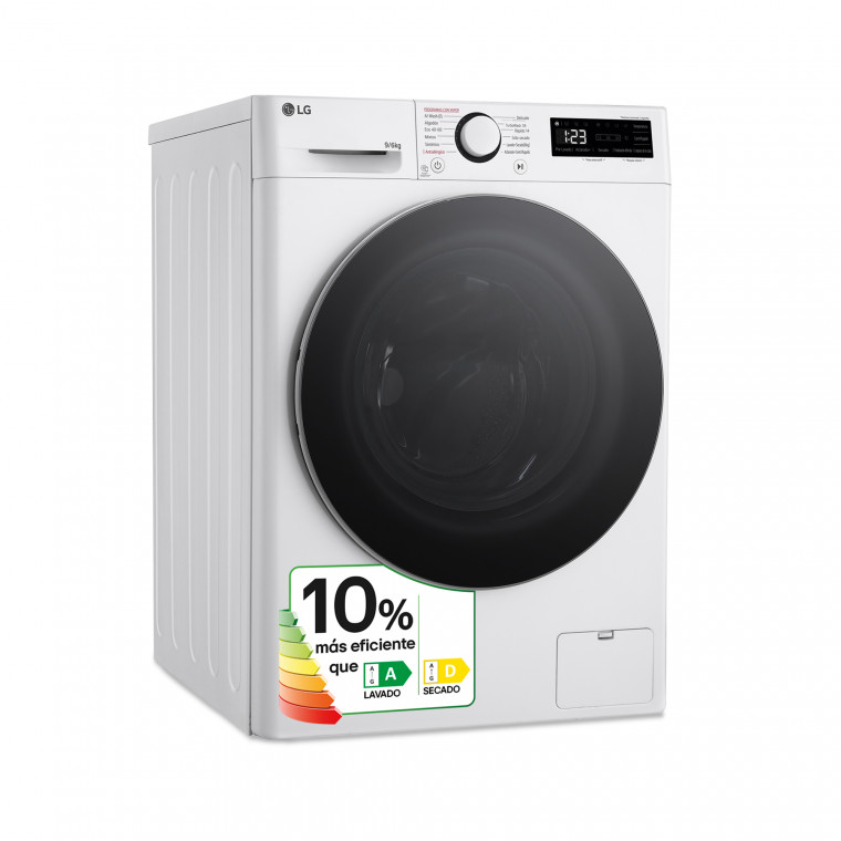 Lavasecadora inteligente LG 9/6kg , 1400rpm, Un 10% más eficiente que A, secado B, Blanca