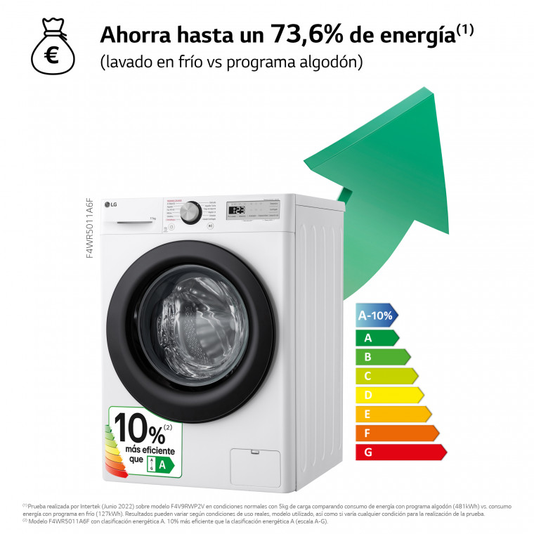 Lavadora 11kg , 1400rpm, Un 10% más eficiente que A, Steam - Algodón Turbo