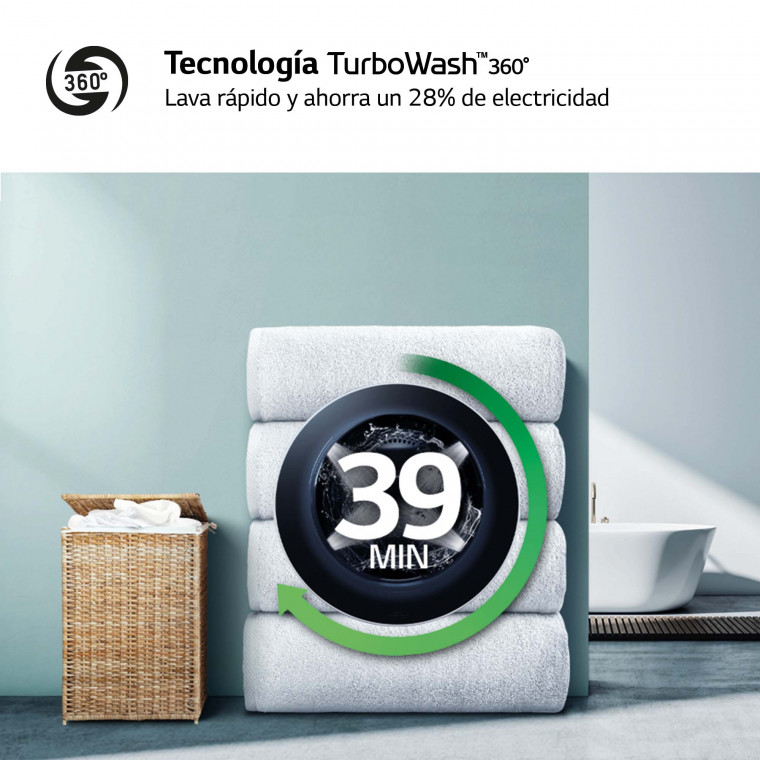 Lavadora 10kg , 1400rpm, Un 10% más eficiente que A, TurboWash 360º- Steam