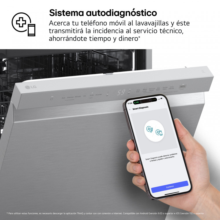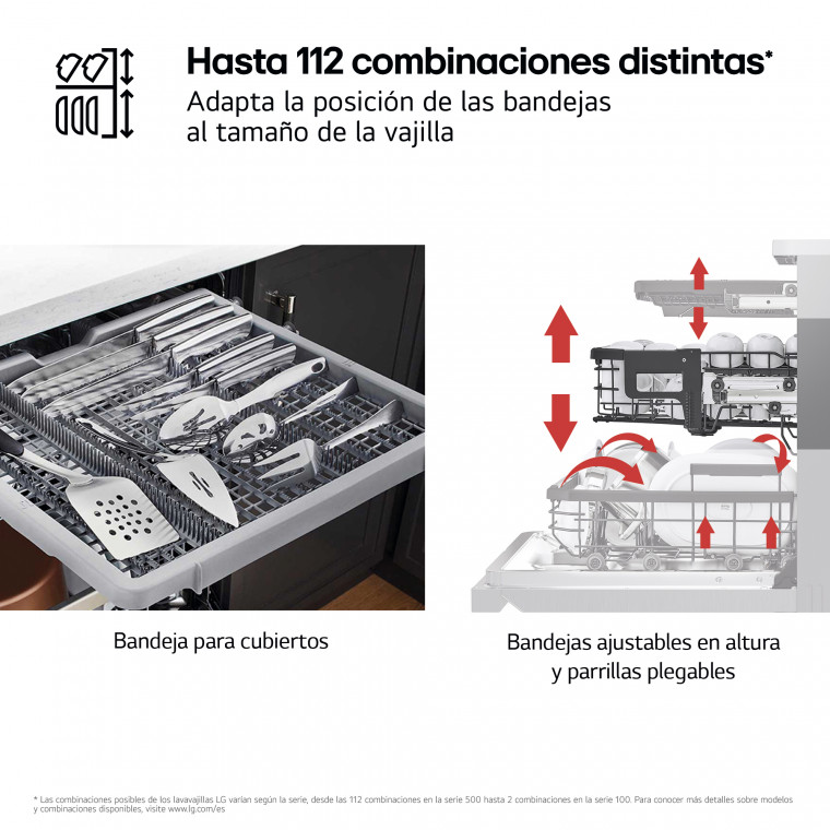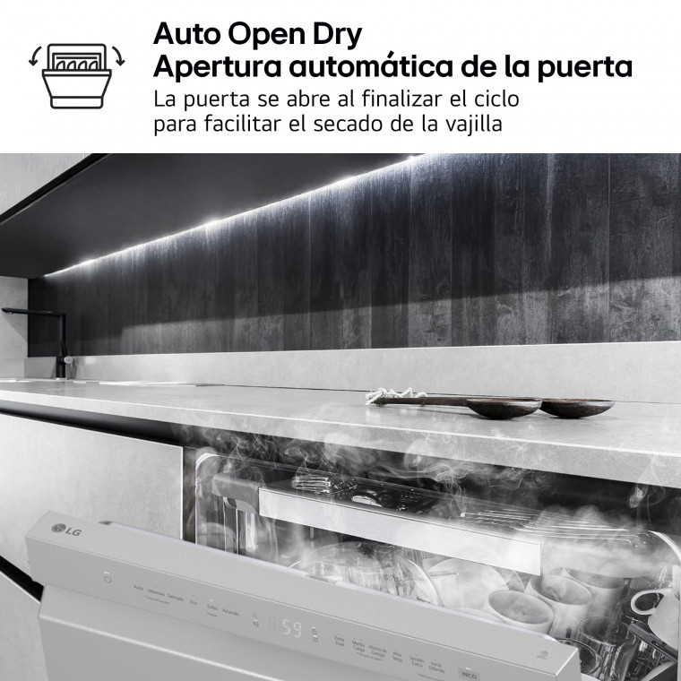 Lavavajillas LG QuadWash™, Inox Antihuellas, Tercera bandeja cubiertos, clasificación D